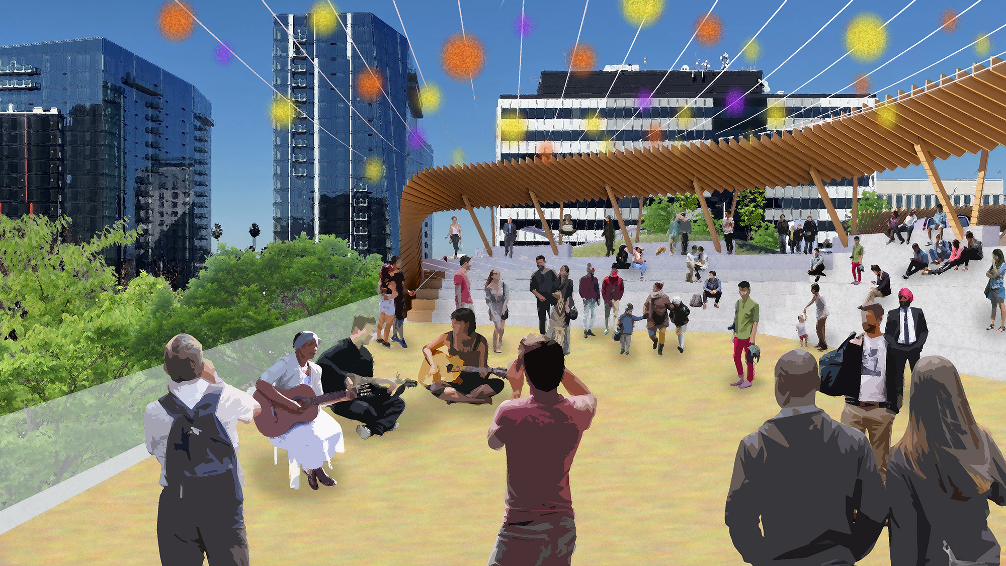 As we emerge from the stresses of this pandemic, we have a greater appreciation for human contact, belonging, and community. In a post-pandemic landscape, cities must address this fundamental need for human reconnection. Using design as a means to achieve this goal, we’re proposing to convert the roof of an underutilized parking garage in San Jose, California, into a “people deck,” where people can gather, relax, socialize, learn, exercise, and enjoy genuine community building. At a time when connection to people and wellness are so valued, this type of urban gathering place seems all the more attractive — for cities, residents, developers, and local businesses.