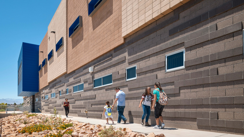 Two-story, 22-classroom additions are meeting a pressing need on Clark County School District Elementary School campuses. To accommodate growth in student numbers and provide a permanent classroom for students located in temporary facilities, Gensler designed a prototype building that has a compact footprint to fit on existing elementary school sites. Providing an additional 34,000 square feet of usable space, the buildings will include six Kindergarten, two special education, one STEM, one flex, and 12 standard classrooms along with administrative and support spaces. The aligning feature of the building’s design is the central stair and core space. Providing an informal student “nook” or flexible collaboration area underneath, the stair links the two floors along with providing a space for “out of classroom” learning opportunities.
