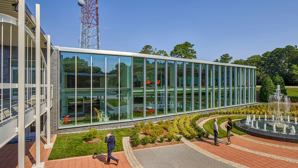 An influential voice in the Raleigh community since the 1930s, Capitol Broadcasting Company continues to lead the national media industry in adapting news coverage to incorporate the latest technological advancements. As its voice evolved in the face of new technologies, its original 1956 home needed to evolve, too. The CBC campus houses, among other groups, broadcast studios for television stations WRAL and Fox 50. The design creates a bright and inviting environment by harmonizing multiple architectural styles and eras of technology.